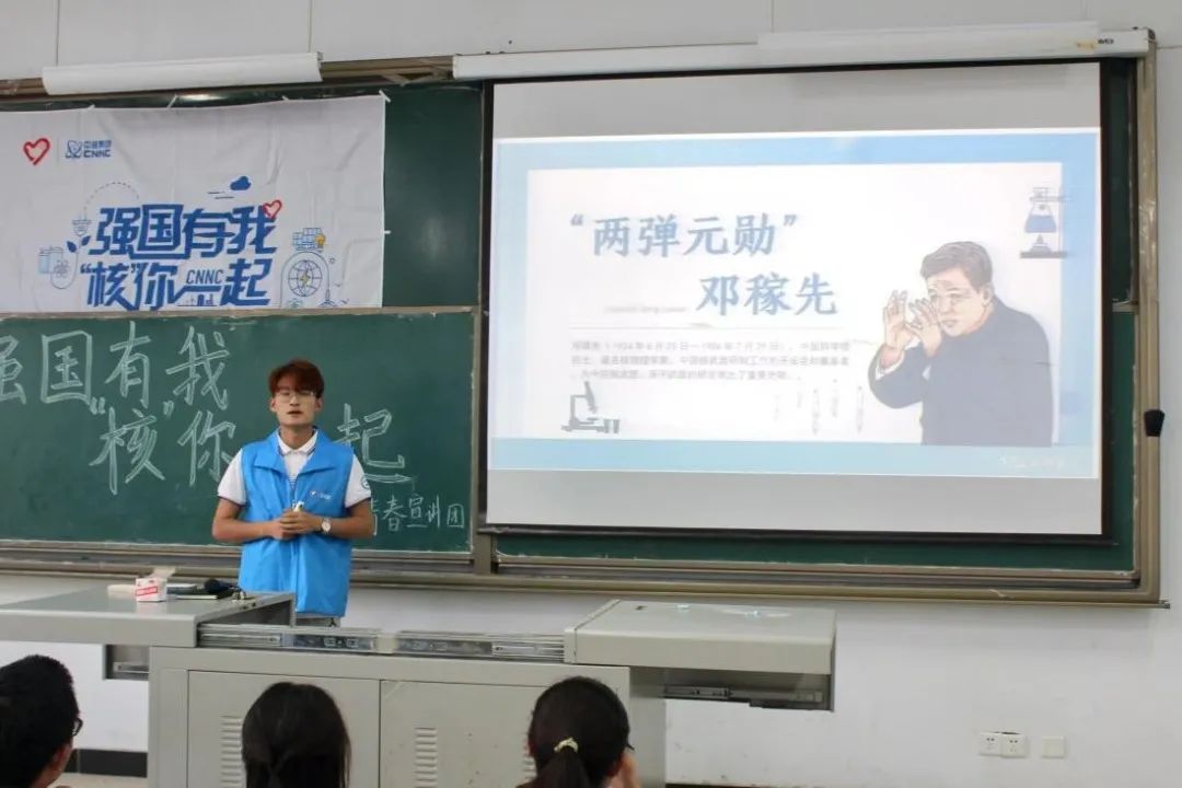 为深入学习宣传贯彻习近平生态文明思想,引导社会公众和广大青年深刻认识碳达峰碳中和目标的重大意义,宣传绿色核能发展理念和核科普知识,自2022年6月以来,学校“青春宣讲团”进各系、进中小学、进社区、进课堂,持续开展了10余场“强国有我,‘核’你一起”宣讲活动。